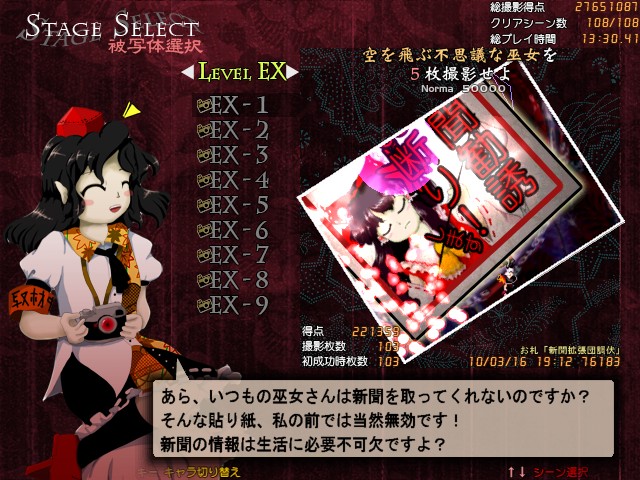 文花帖とダブルスポイラーにて写真を撮っていた文へのセリフ。